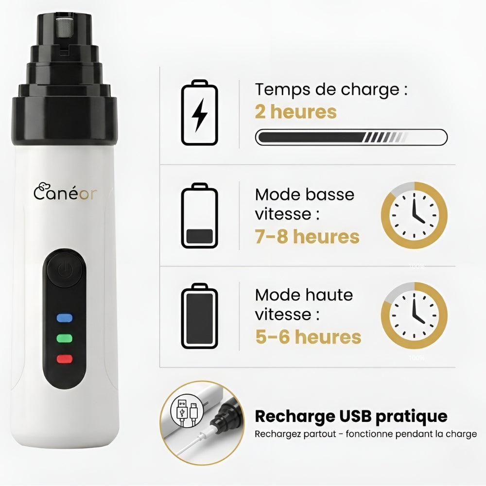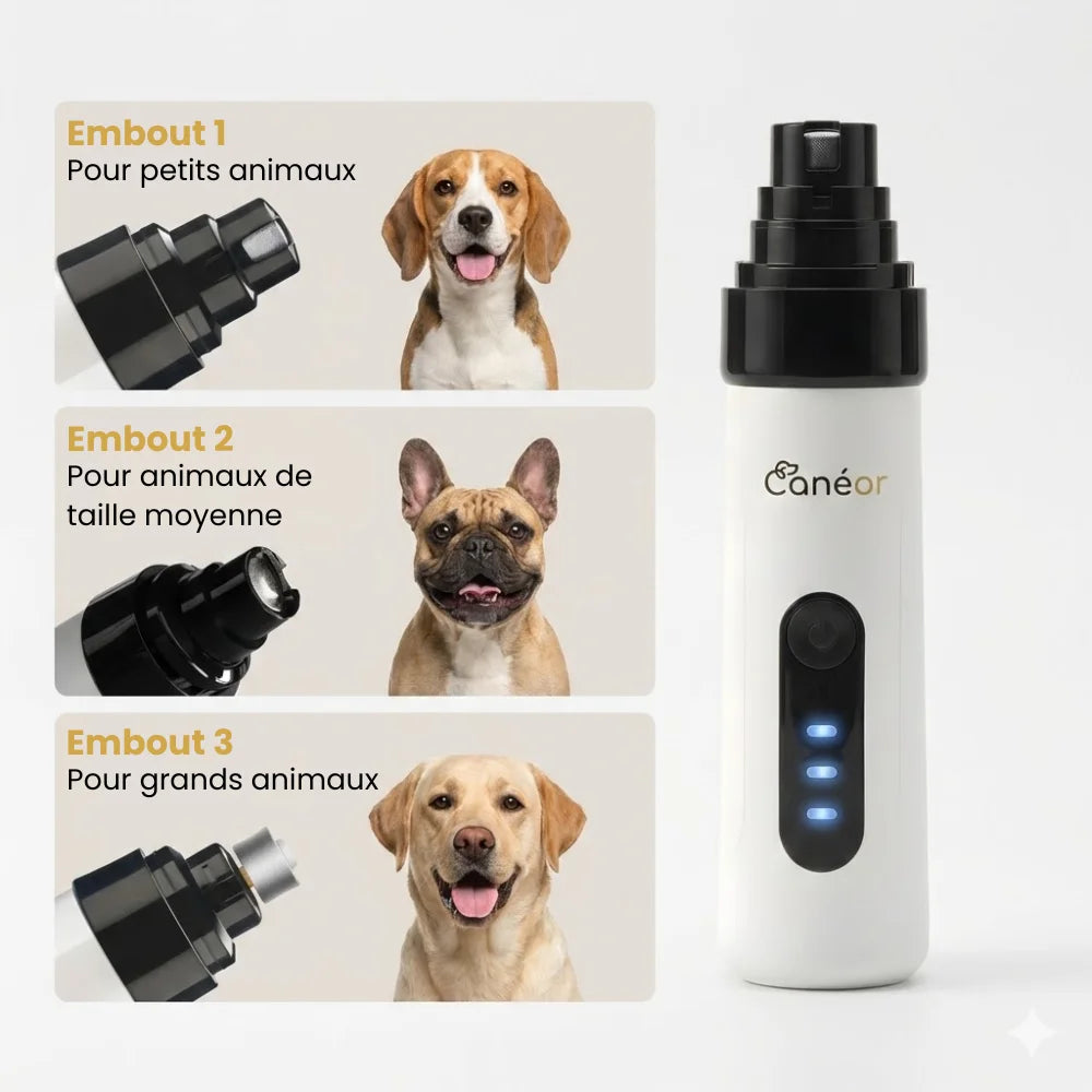 Ses trois ouvertures et ses deux vitesses permettent un limage précis et confortable, selon l’épaisseur des griffes et la sensibilité de l’animal.